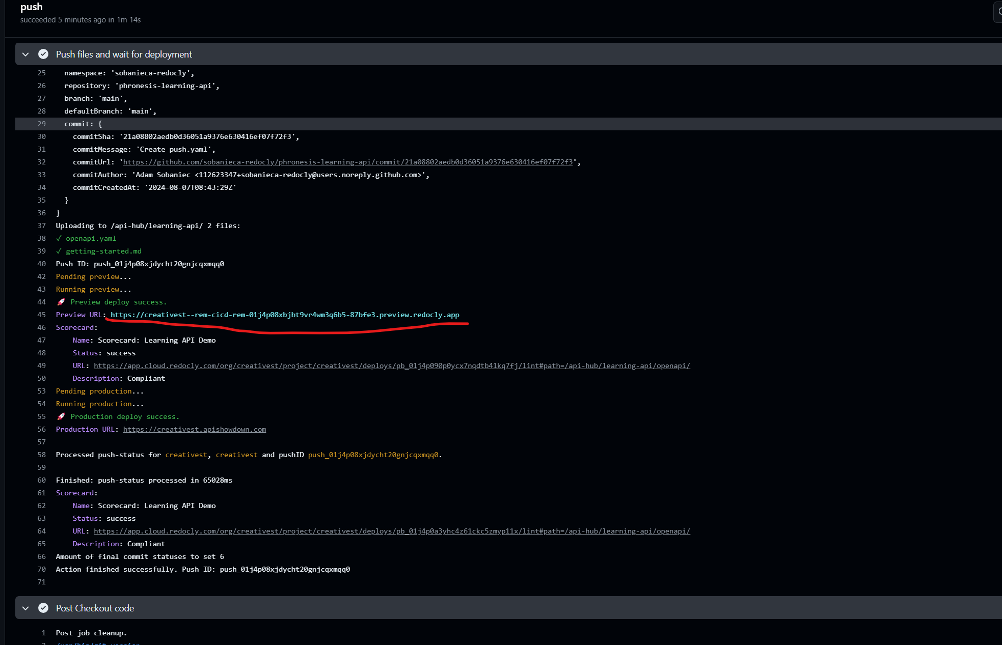 - It wasn't clear at the beginning that we are supposed to NOT install Redocly Github App. Documentation should have more explicit mention of remote content methods - granting access for Redocly with my repository or me pushing my changes on CI/CD to redocly.