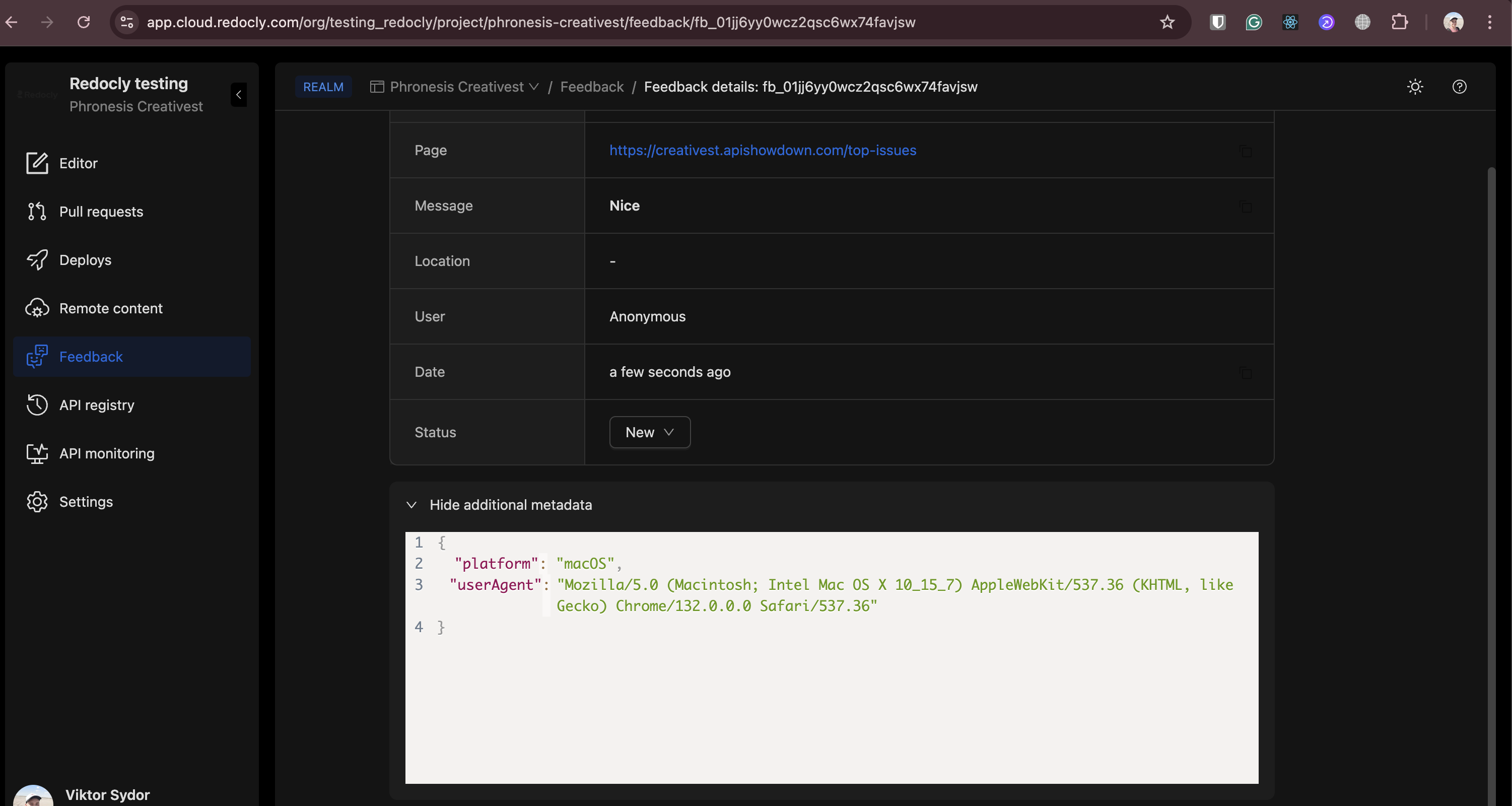 - Metadata component at Feedback has white background