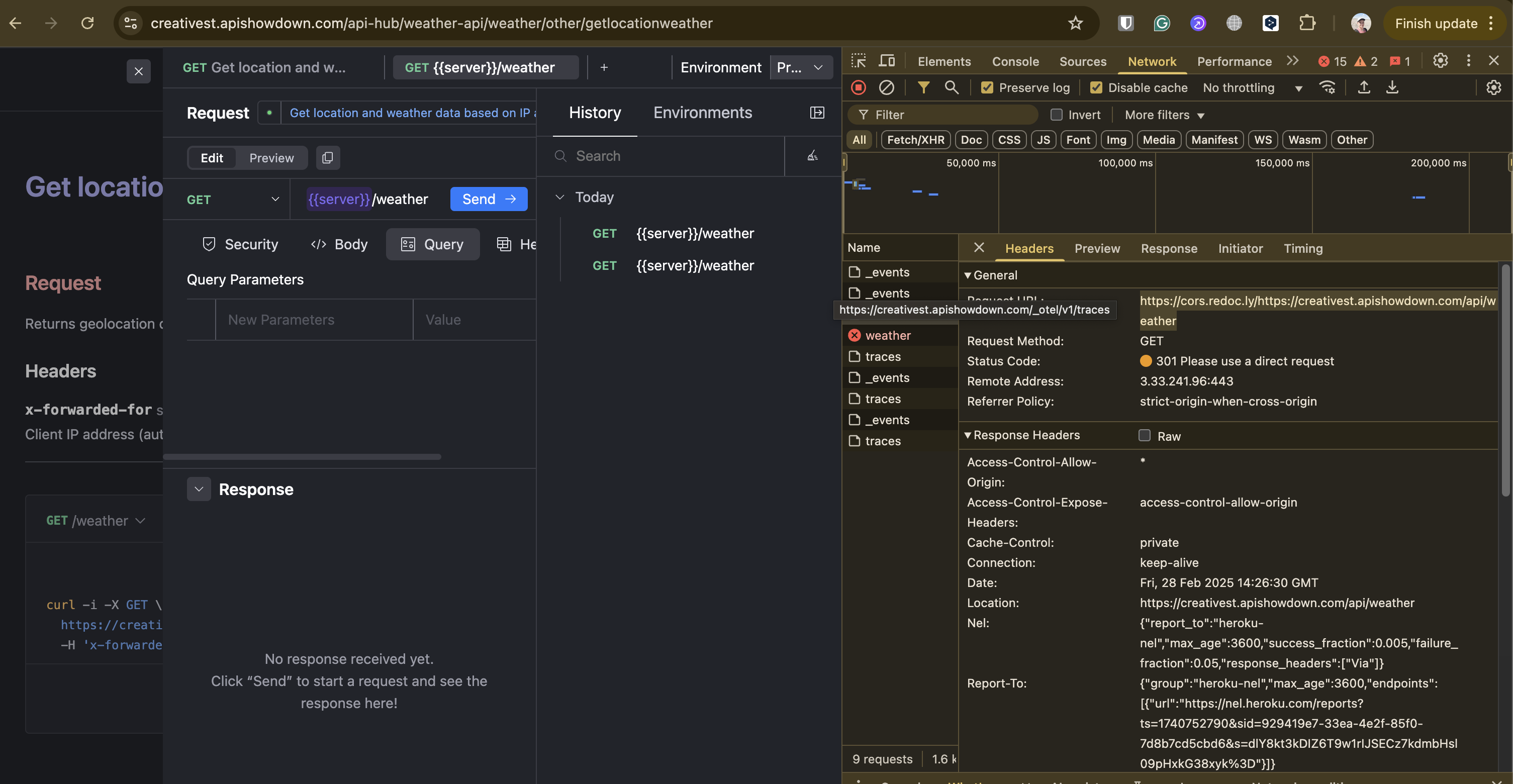 /api/weatherfrom replay, we getCORSerror. If try call directly it works.