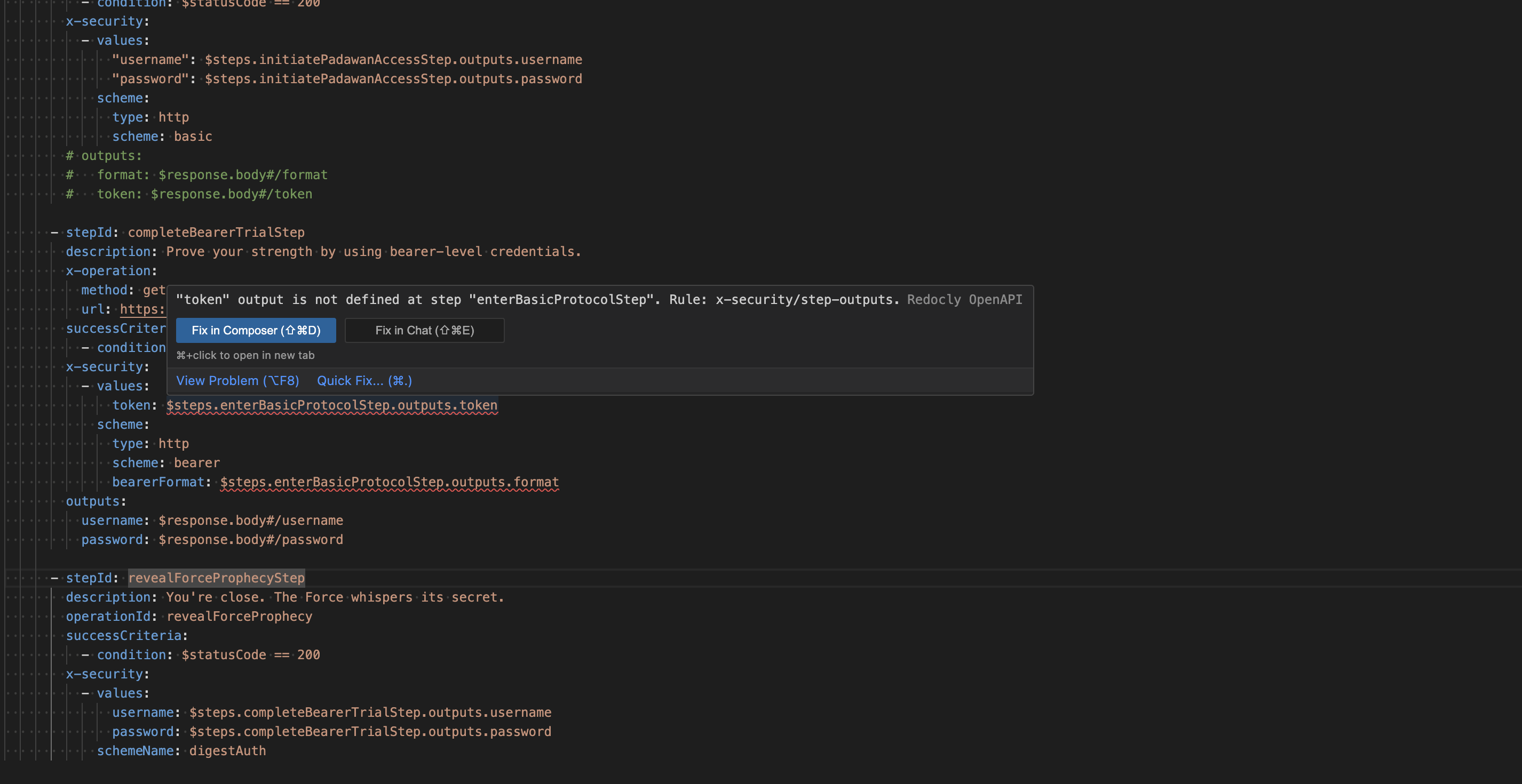 - Missed validation for outputs in Arazzo. We forgot to add outputs to the previous step, and we didn't receive an error about that. Instead, we received a missed required value error.